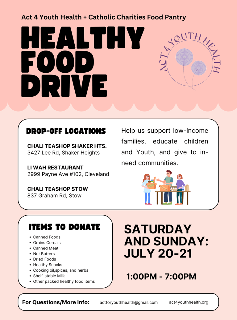 This is an incredible way to give back to your community by taking a little time out of your summer and joining Act 4 Youth Health to help the communities. All proceeds will go to Catholic Charities food pantry.