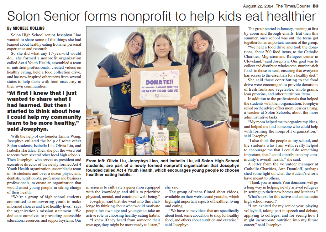 This healthy food drive organized by Actions for Youth Health is an initiative aimed at promoting nutrition and wellness within the community. This event focuses on collecting and distributing wholesome, nutrient-rich foods to those in need, ensuring that everyone has access to the essentials for a healthy diet. Our drive encourages donations of fresh fruits and vegetables, whole grains, lean proteins, and other nutritious items. Volunteers, including our dedicated high school students, work together to sort and distribute these healthy food options to local families and individuals. By emphasizing the importance of nutritious eating habits, we aim to raise awareness about the benefits of a balanced diet and support the well-being of our community members. The healthy food drive not only addresses immediate food insecurity but also educates and inspires healthier lifestyle choices, contributing to the overall health and resilience of our community.